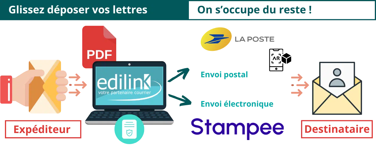 Edilink opère ses lettres recommandées électroniques en interne via Stampee, sa plateforme certifiée eIDAS.